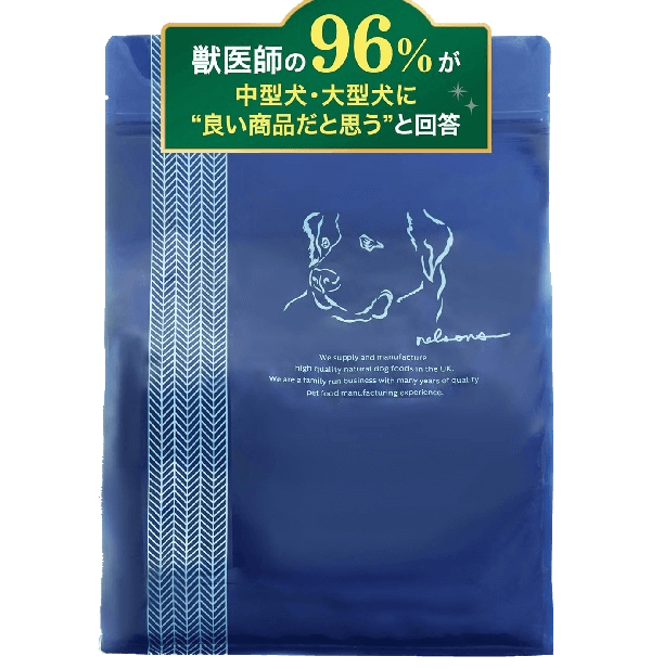 大型犬は体が大きく、筋肉量が多いため、高タンパクなフードが必要です。筋肉を維持するために主原料が「動物性たんぱく質(鶏肉、魚など)」が多く含まれたフードを選びましょう。また、大型犬は活発な犬種が多くエネルギー消費量が多いのでエネルギー補給をしっかり行える高カロリー設計が理想的です。