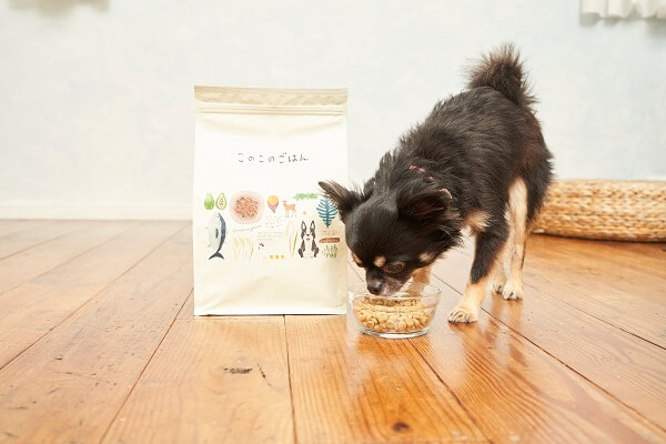 このこのごはんは小型犬向けに設計された国産ドッグフードです。小粒サイズで食べやすく、消化吸収を助ける食材を厳選して使用。主原料には高タンパクな鶏肉を中心に鹿肉や鰹節を加え、愛犬の健康をサポートします。また、腸内フローラを整える乳酸菌や目元・毛並みの健康維持に役立つ青パパイヤ末やモリンガを配合。目元やにおいが気になっている方にオススメです。