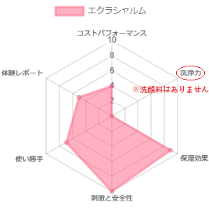 エクラシャルムは洗顔後に使用するオールインワンジェルなので洗浄力はありません。