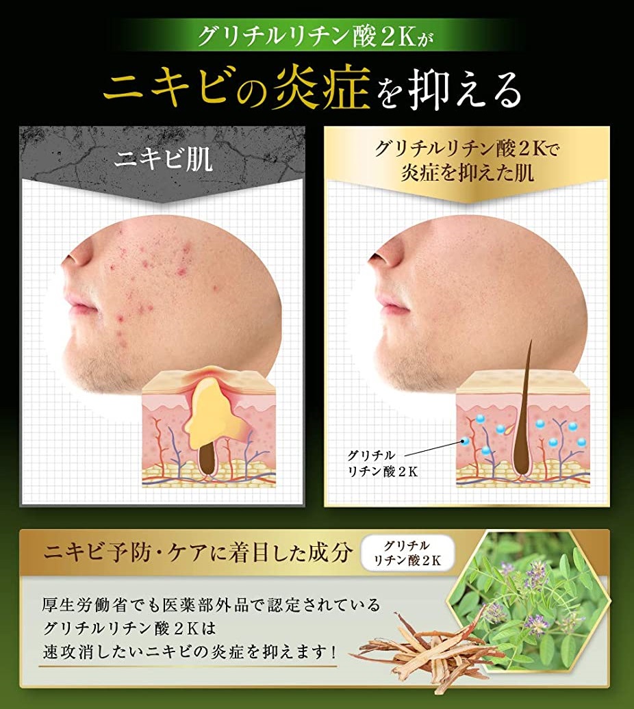 1有効成分「グリチルリチン酸2K」でニキビの根本から整える
