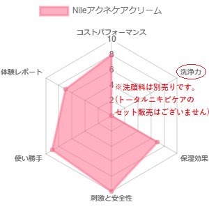 Nileシリーズでは別途洗顔料がございますがこのページではNileアクネケアクリームのみの評価となります。