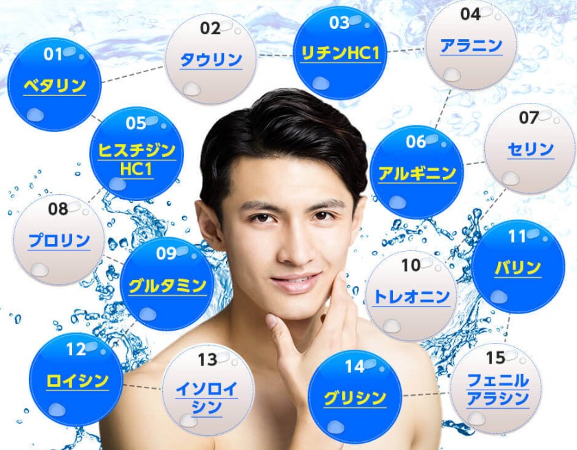 更にアミノ酸15種類により肌にうるおいとハリを与えます。