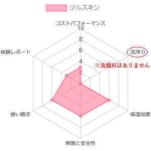 ツルスキンは洗顔後に使用するニキビケアジェルなので洗浄力はありません。そのため上記データでは洗浄力が0となっております。