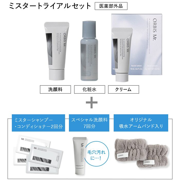 | ※ORBISの基礎化粧品には特徴の違った複数のラインナップがあり、その中でも男性用の製品が『Mr.』です。 | |